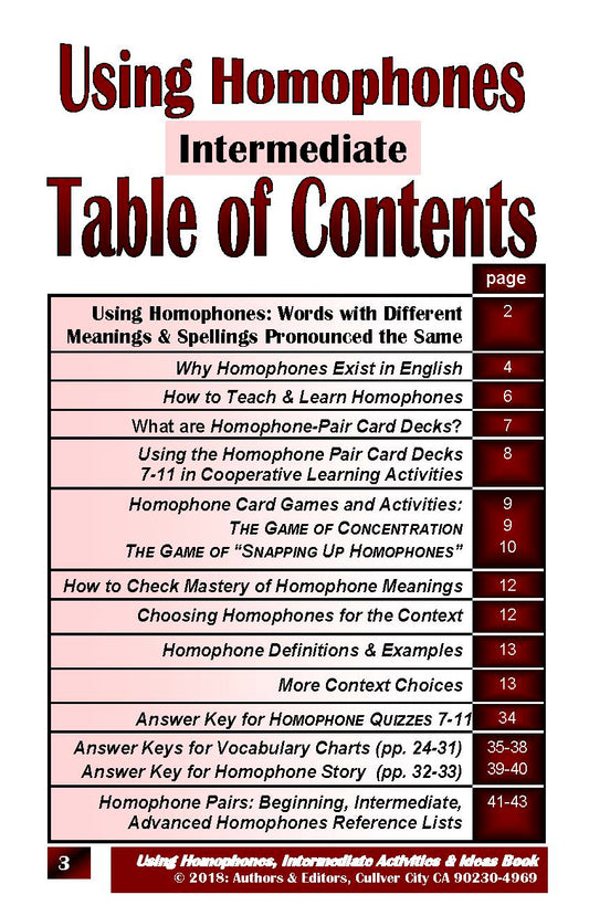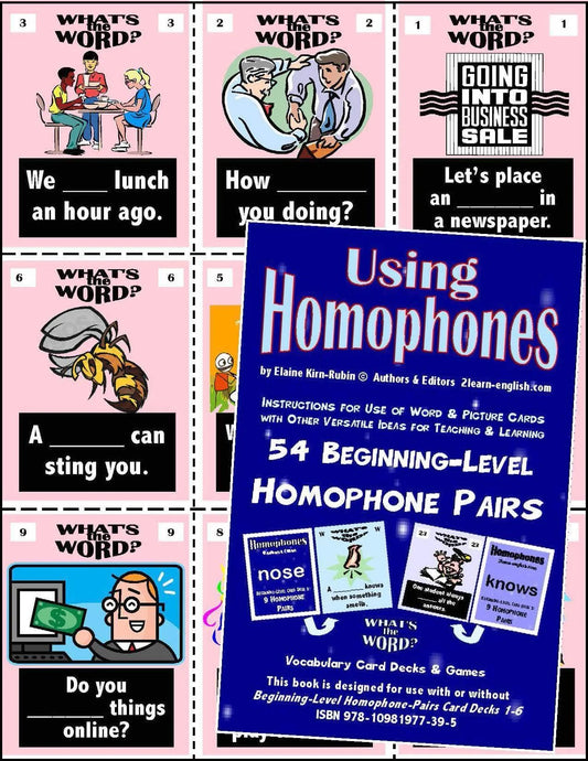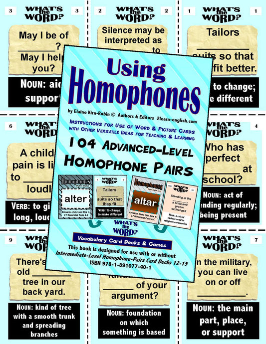 C-05 Using Homophones (3 Activities & Ideas Books / Beginning Decks 1-6, Intermediate 7-11, Advanced 12-15 (Print Version + Shipping)