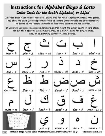 A-03.08 Play Alphabet Bingo and Lotto with Arabic Characters