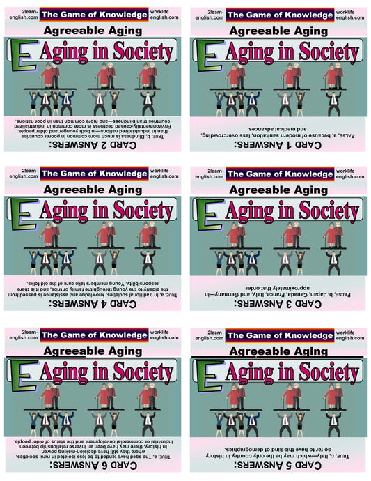 J-01.02 e & f. Get 3 Versions (T/F, Multiple Choice, Short-Answer) of Questions & Answers About E. Aging in Society / F. Success in Aging With the Subject Matter of The Game of Knowledge: Agreeable Aging on 108 Two-Sided Cards