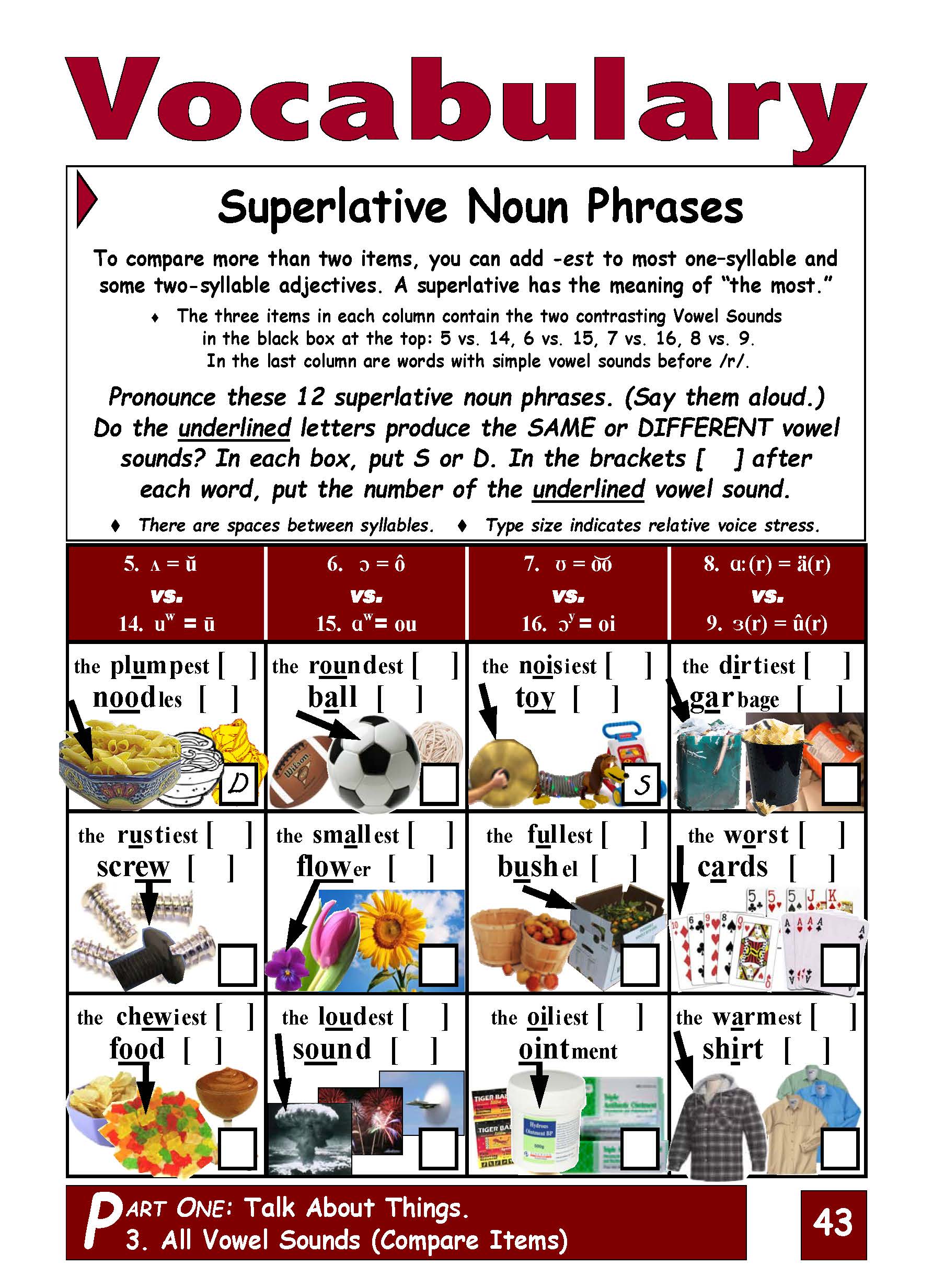 E-01.07 Distinguish All (16) Vowel Sounds in (Comparatives & Superlatives in) Noun Phrases