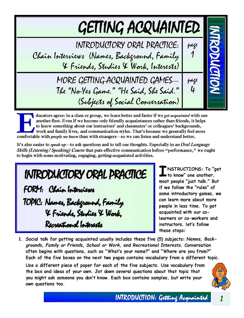 Introduction to Speaking: Oral Language Skills for Real-Life Communication—Getting Acquainted: pages 1-4
