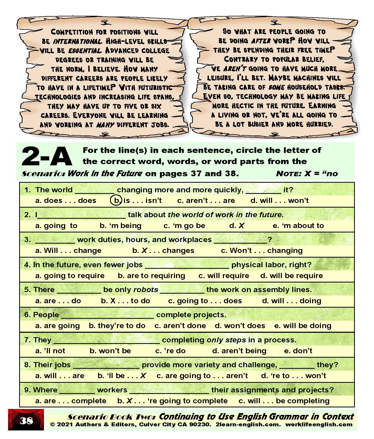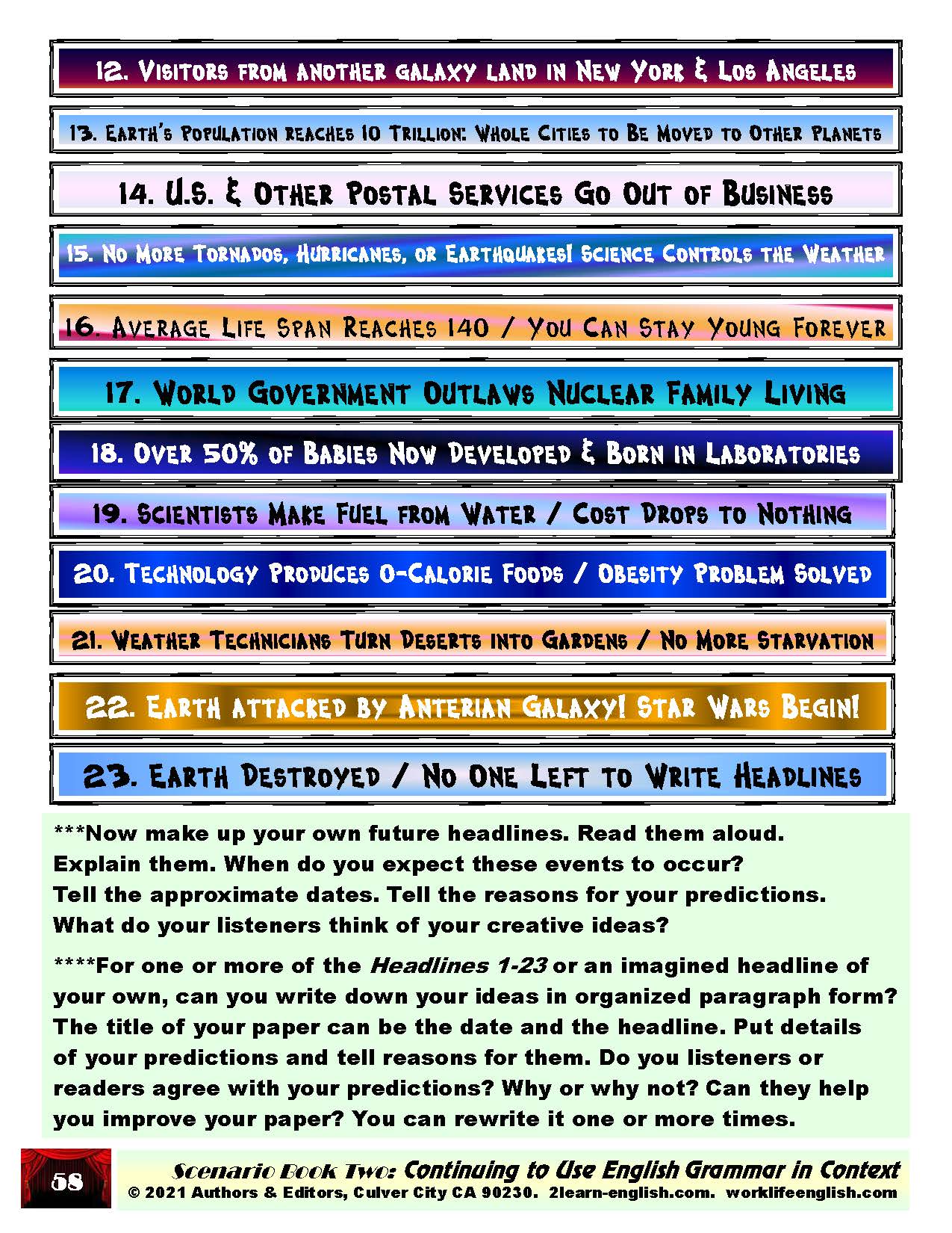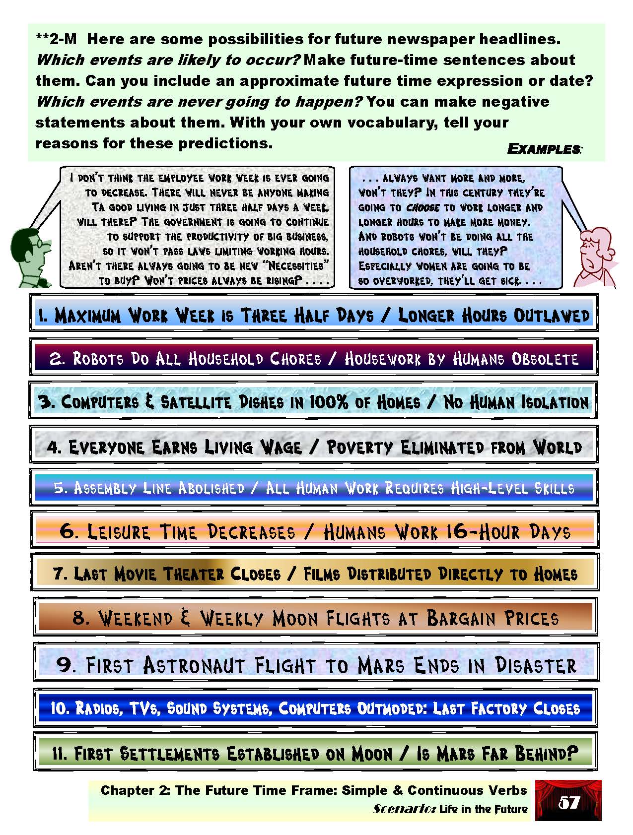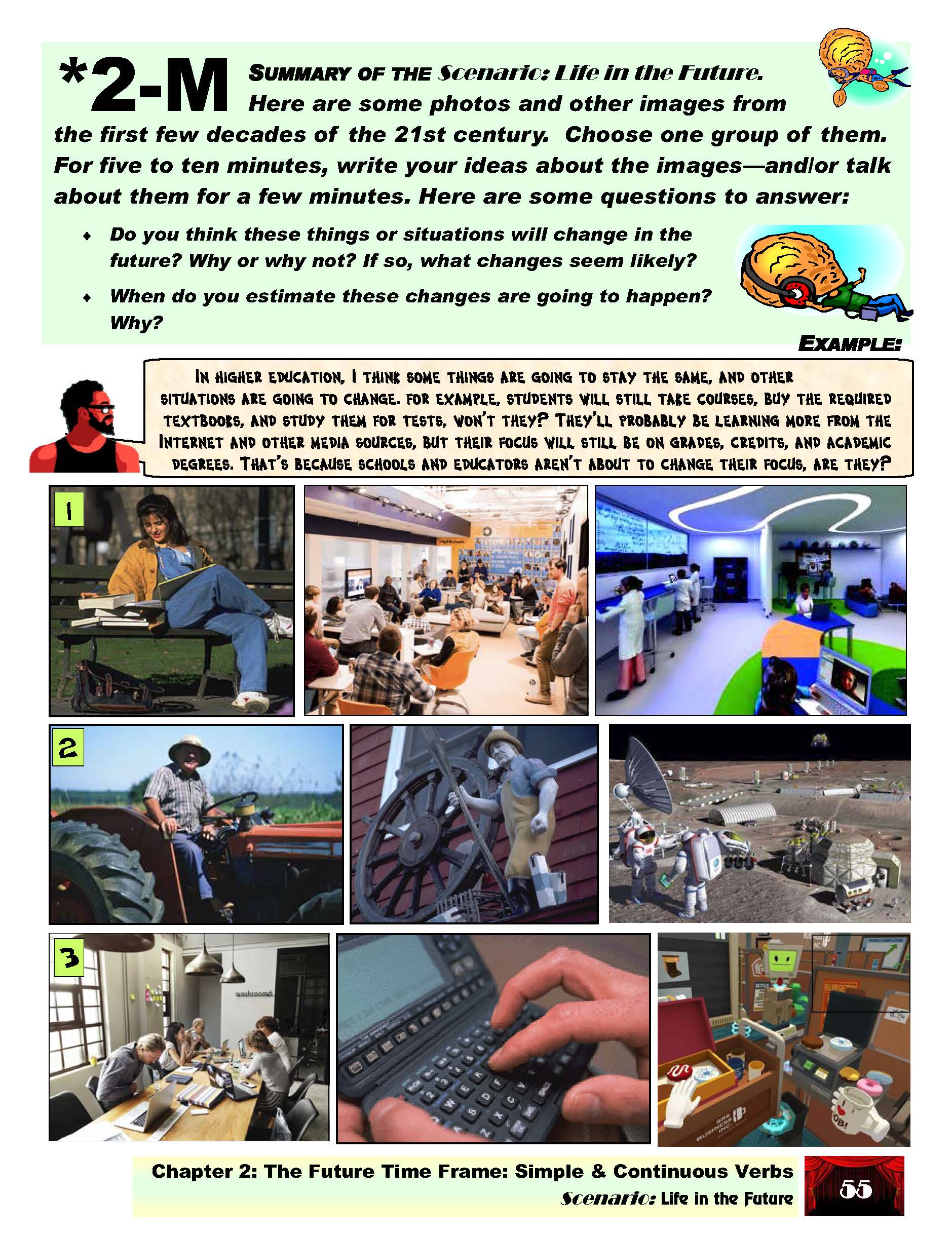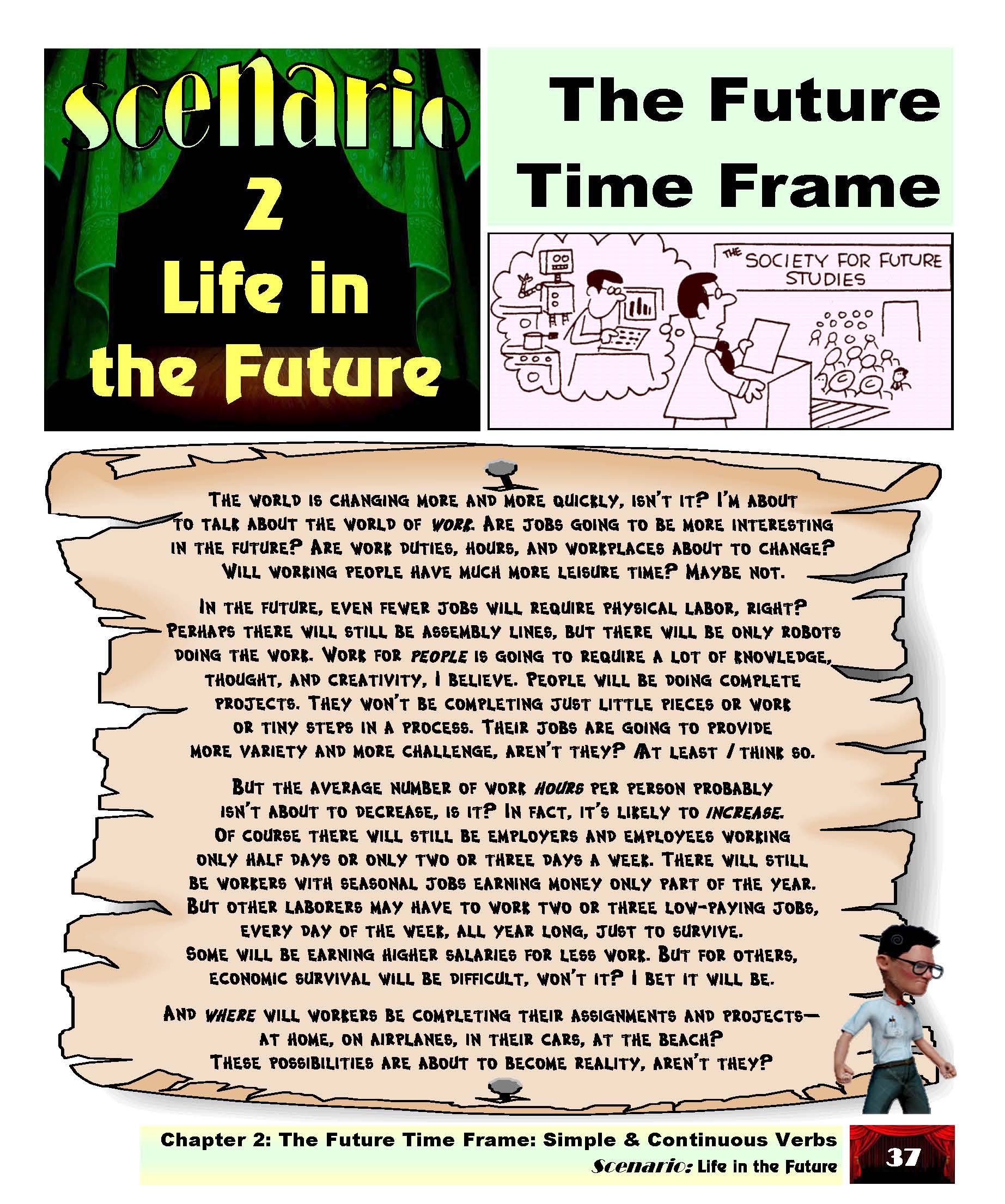 Chapter 2 (The Future Time Frame: “Life in the Future”) of the New Scenario Book Two: Continuing to Use English Grammar in Context, pages 37-58