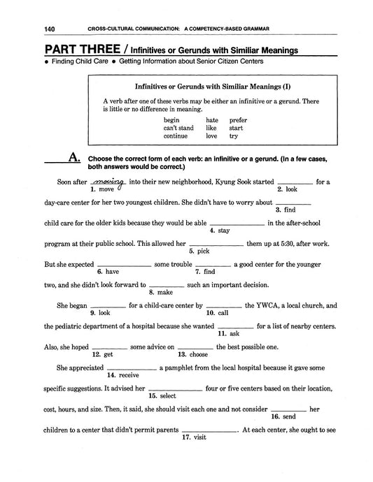 D-11.13 Review Gerunds (After Verbs [of Perception] or Adjectives + Prepositions [or To], Apart from or in Contrast with Infinitives