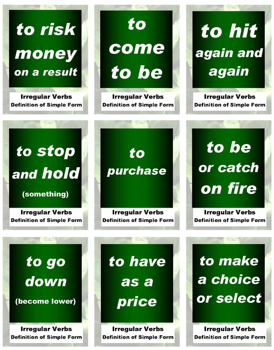 D-13.12 Get 108 Cards for 36 Verbs, Intermediate Base + Past-Form + Past Participles