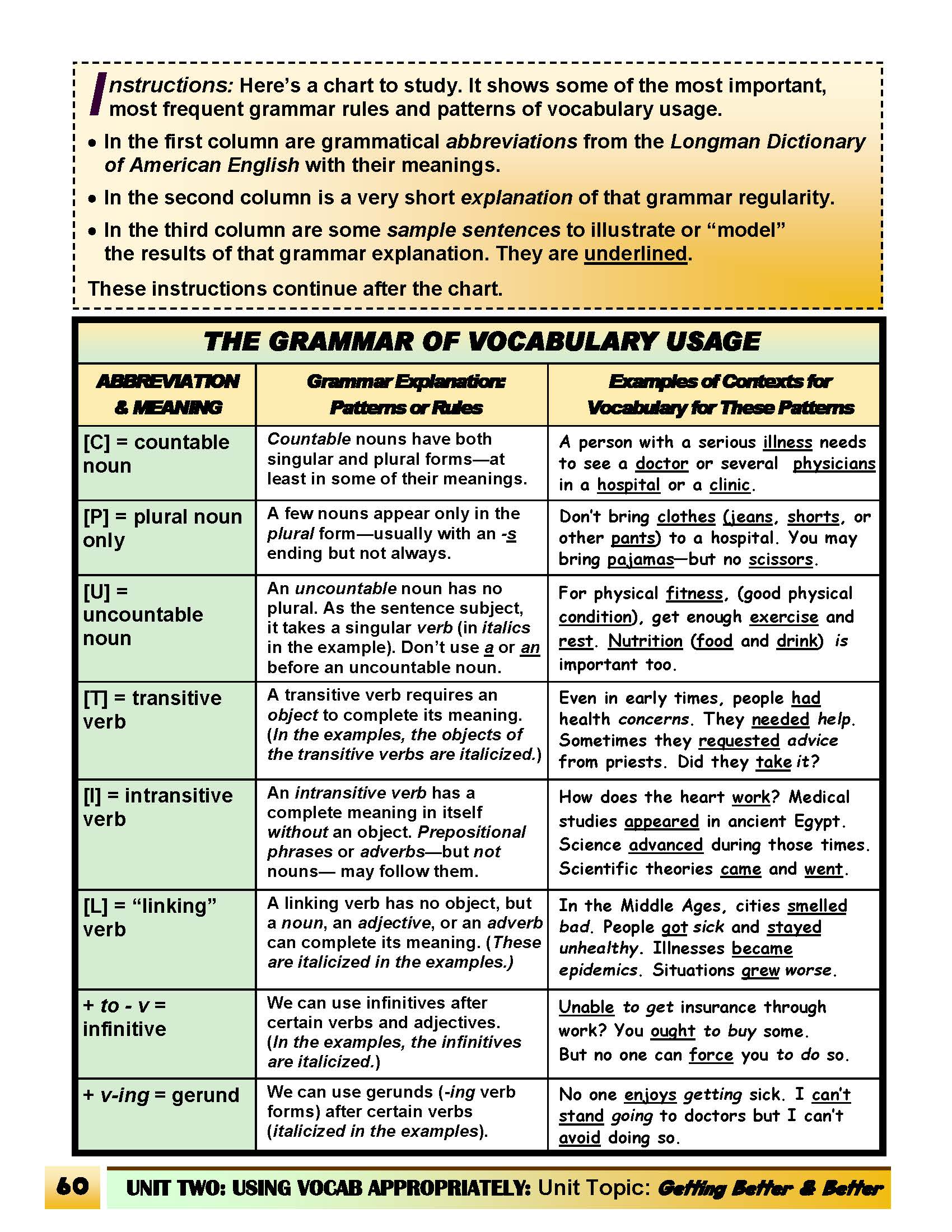 Why You Need It: Certain grammatical considerations apply to various parts of speech—and certain kinds of elements belong in different kinds of phrases. Awareness of relevant patterns and rules helps in both receptive and active vocabulary acquisition.