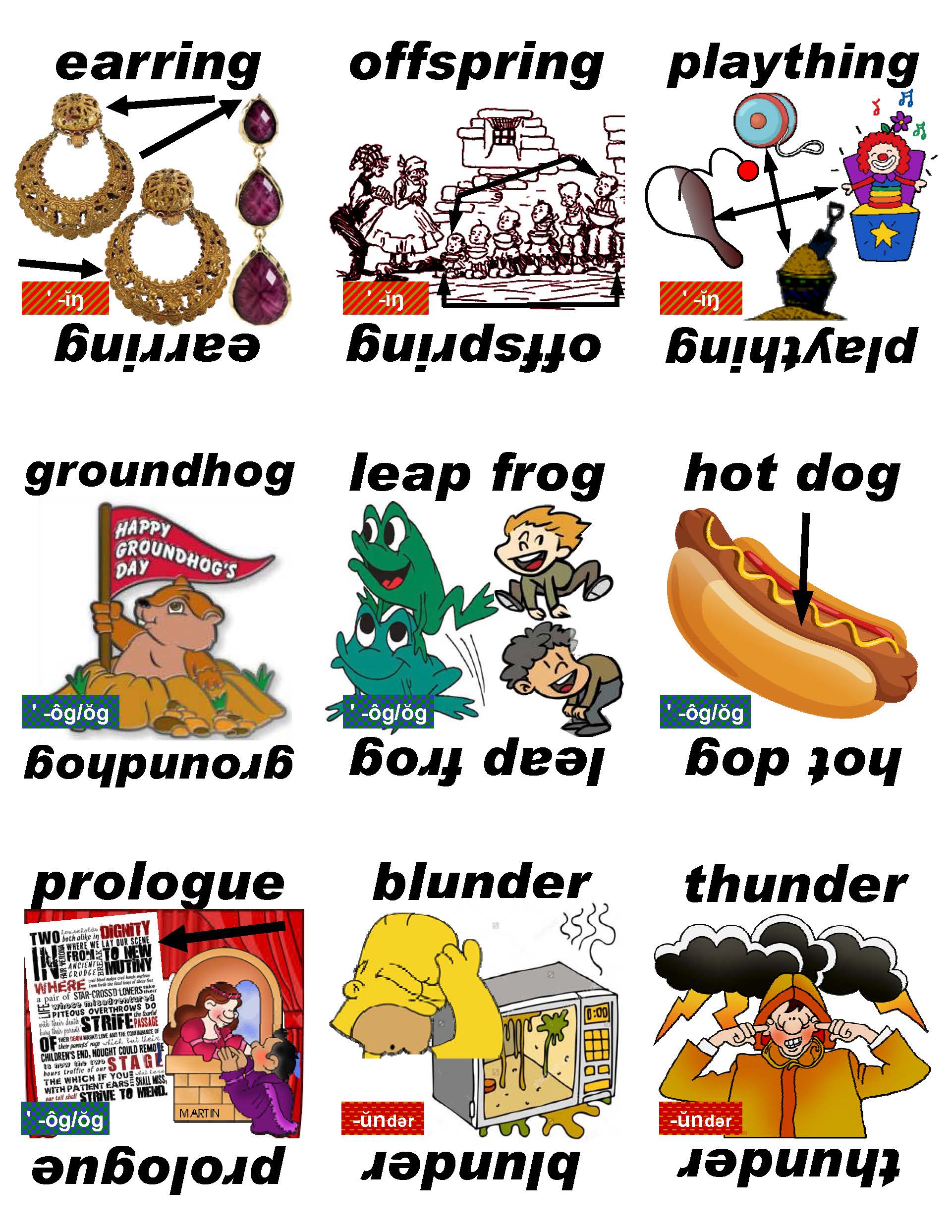 [2] If helpful, use the cards to review the concept that different kinds of vocabulary (compound words or phrases, different parts of speech, even words borrowed from other languages) can rhyme.