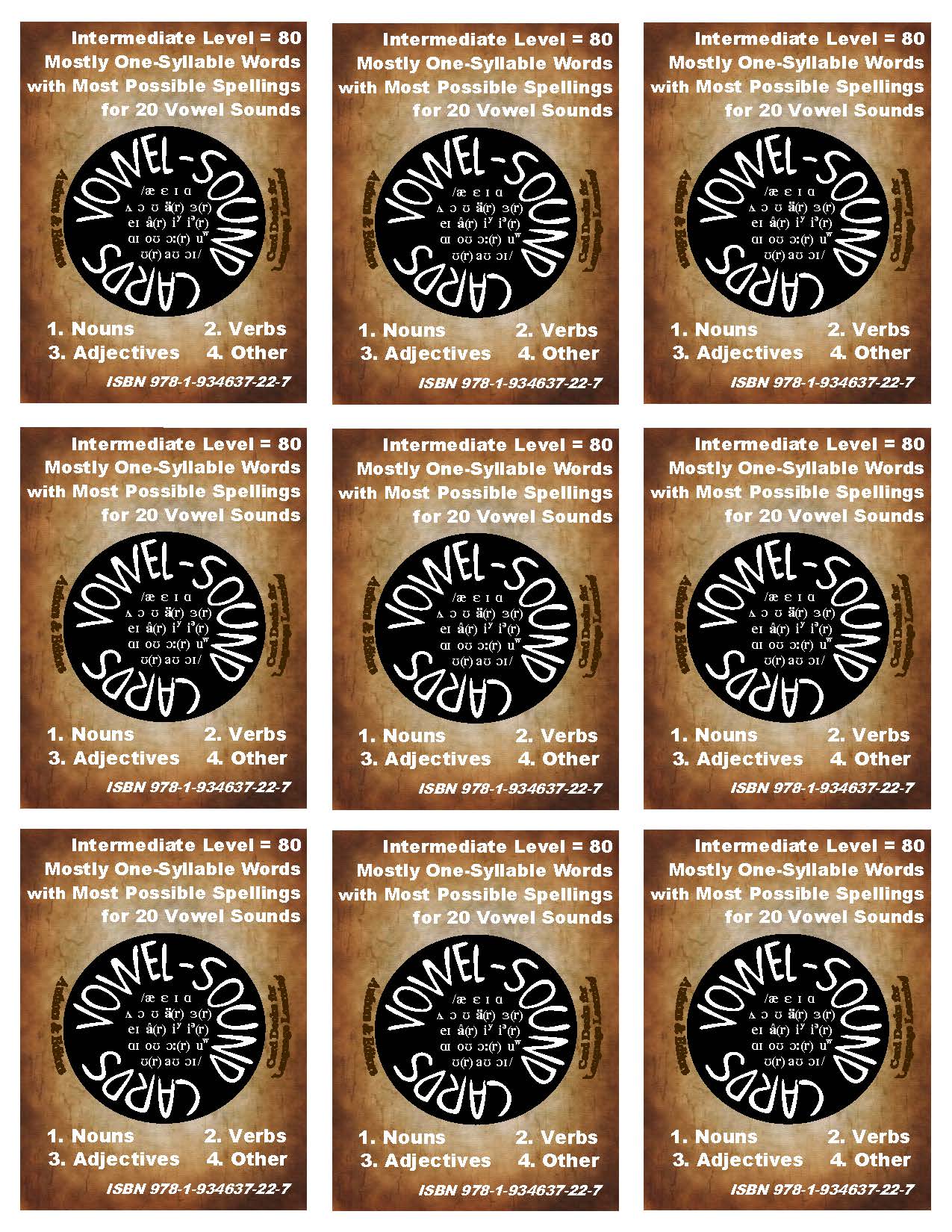[3] Try some of the cooperative or competitive learning activities suggested in the 90-page multi-level Vowel Sounds & Spellings Activity & Idea Book. Or use the cards for instruction, activities, and games as accustomed—or in experimental ways.