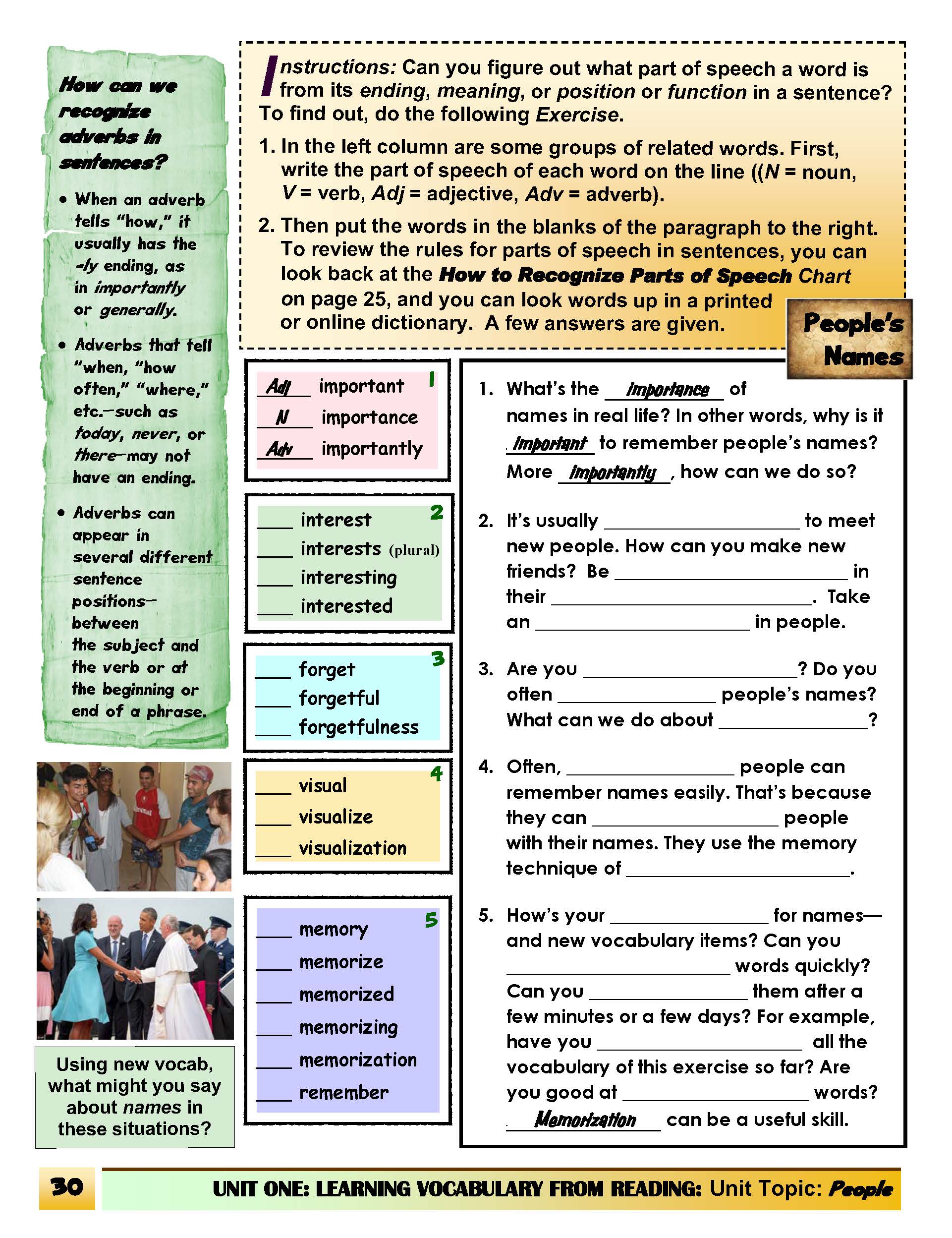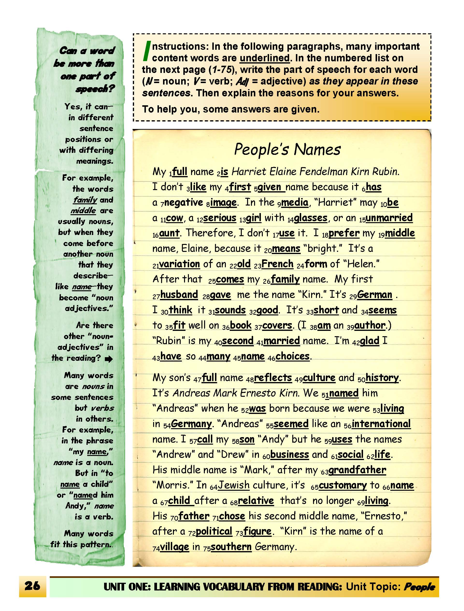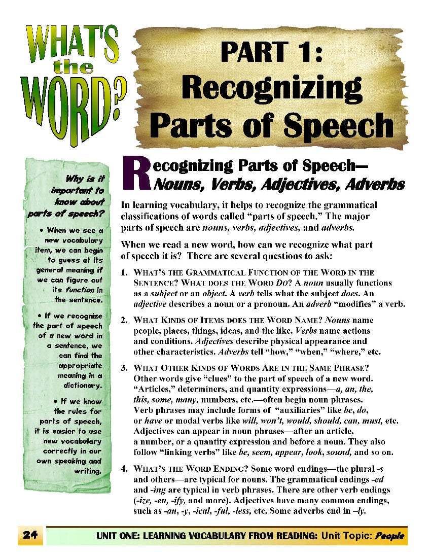 Why You Need It: Awareness of “Parts of Speech” facilitates both understanding of the meaning of vocabulary items and the ability to use them appropriately in speech and writing.