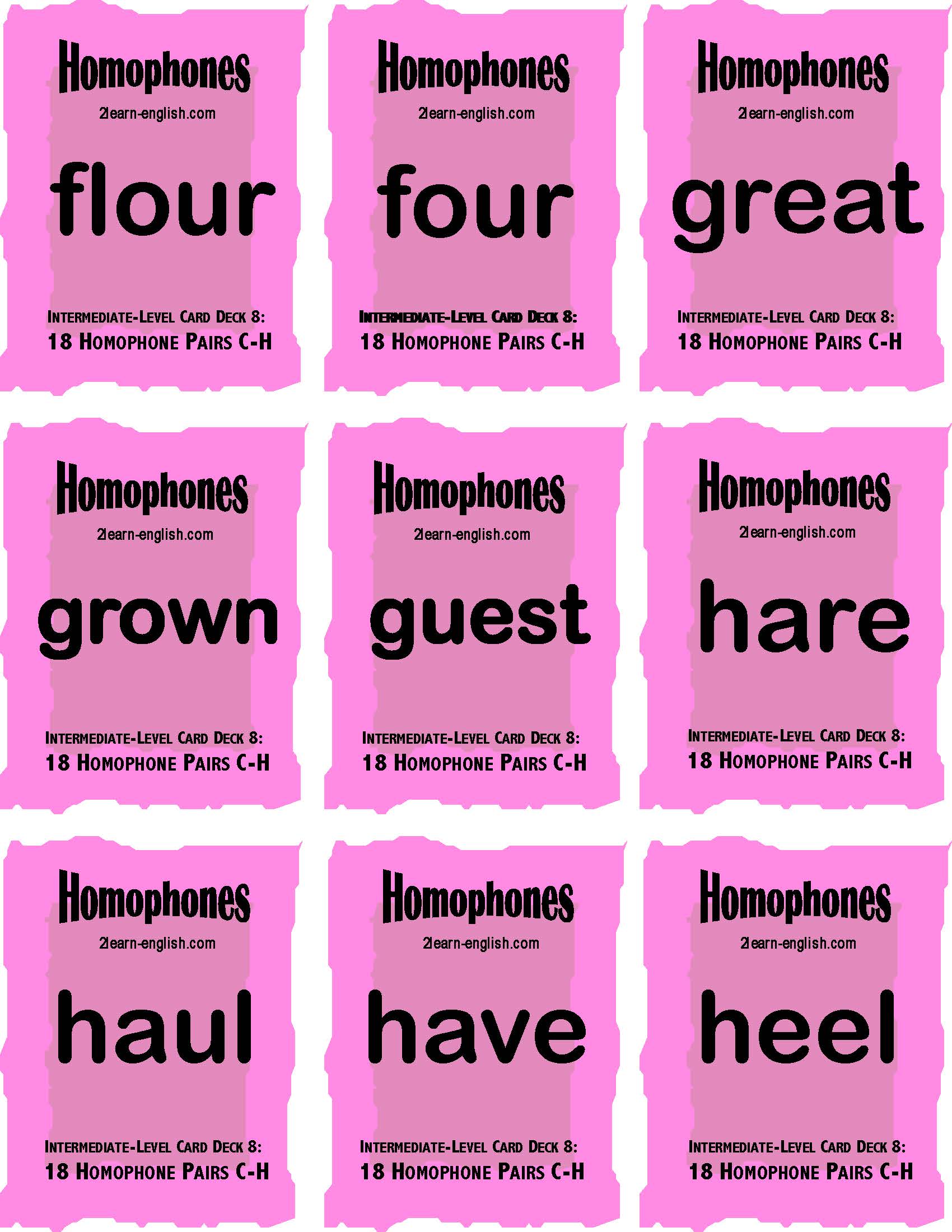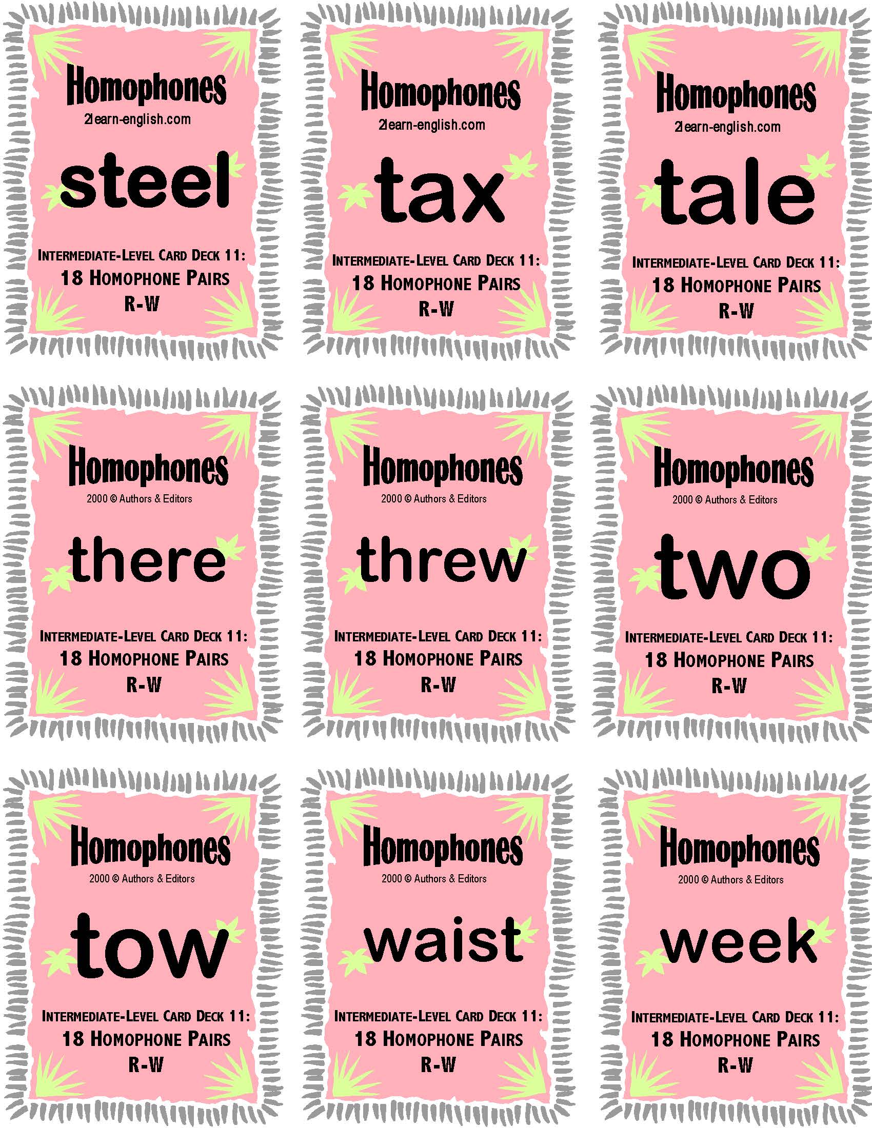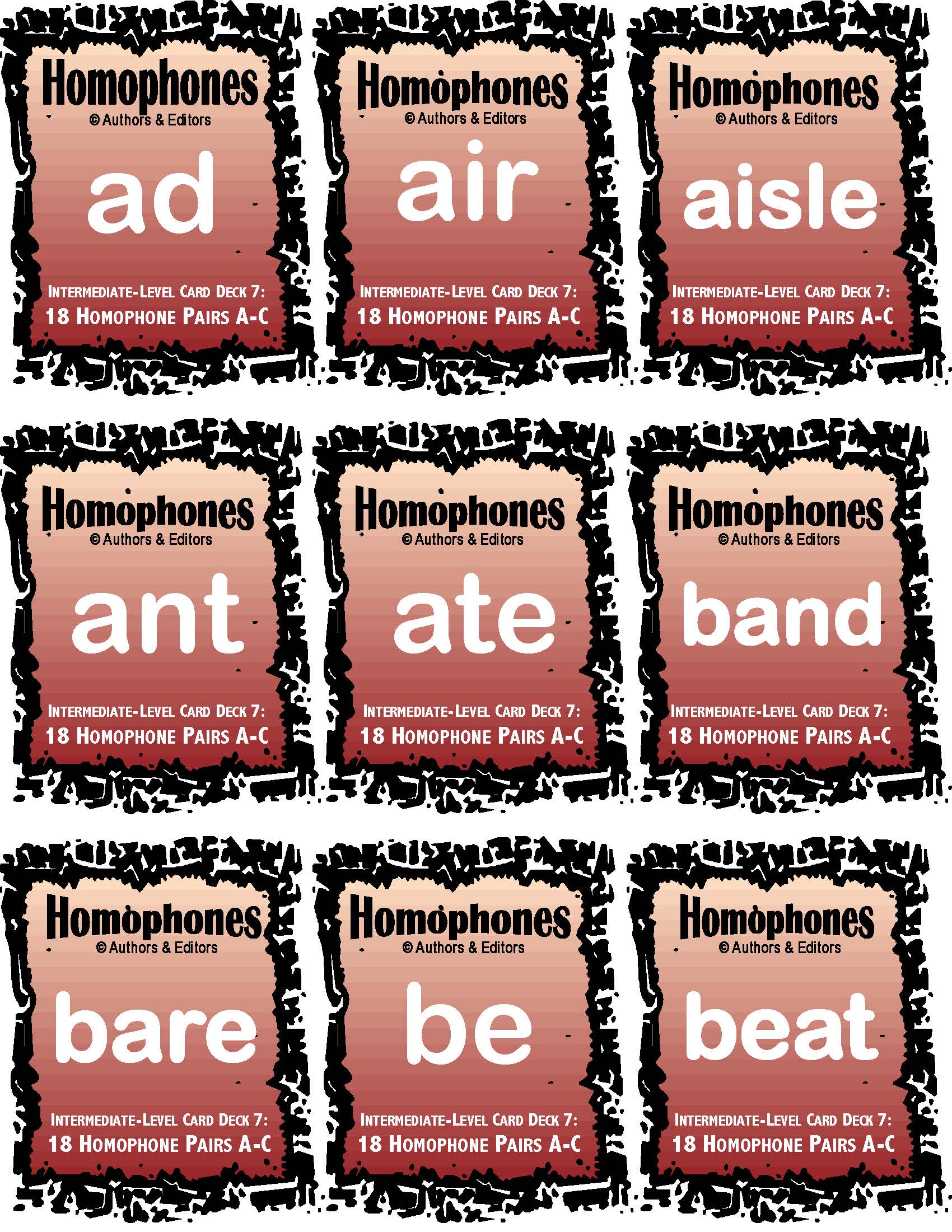 - Five Decks (7-11) of Intermediate Homophone Cards (90 pairs)