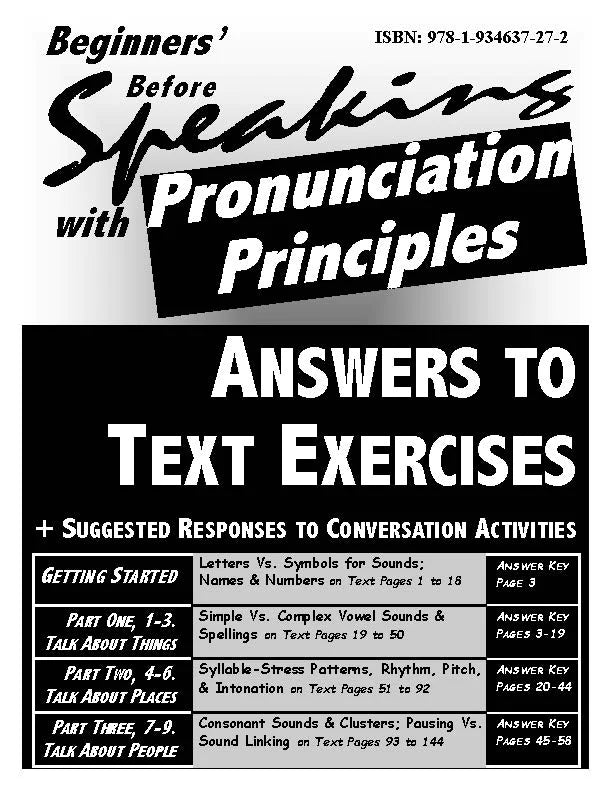 A 60-page Answer Key for all material in Beginners' Before Speaking with Pronunciation Principles that requires or encourages oral response