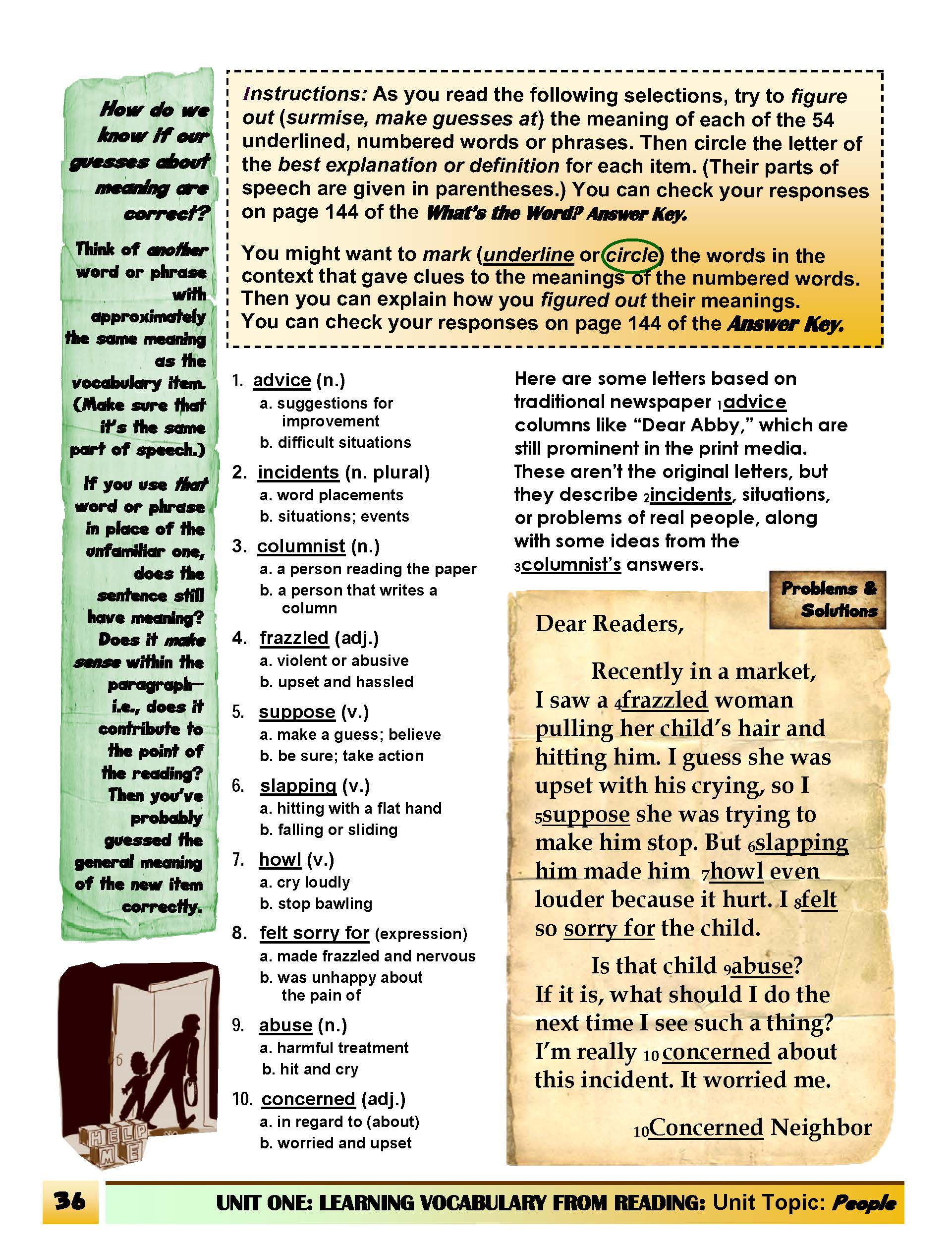 [2] Use context to fill in missing vocabulary in more “Letters.” Check the usefulness of your choices in given contexts. Compare them with other situations.